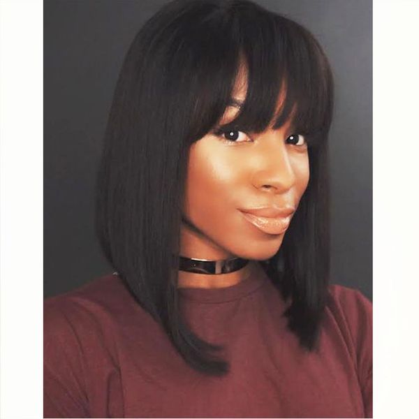 Trendy Short Bob Straight Full Wig With Fringe Bangs Brazilian Remy Human Hair V Ebay